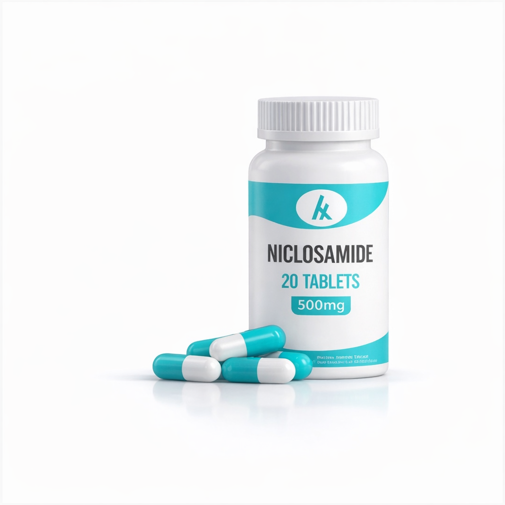 Niclosamide 700mg tablets are packaged in a secure 60-count bottle designed for controlled and directed use. Each tablet contains 700mg of niclosamide and is manufactured under quality-controlled standards to ensure consistency and product integrity.