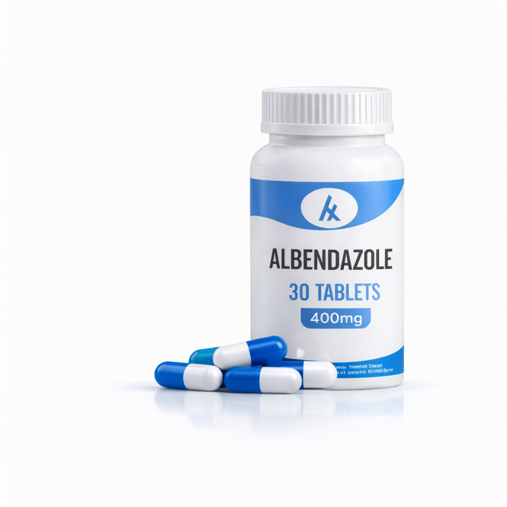 Albendazole 800mg tablets are supplied in a secure 30-count bottle designed for controlled and directed use. Each tablet contains 800mg of albendazole and is manufactured under quality-controlled standards to ensure consistency and product integrity.