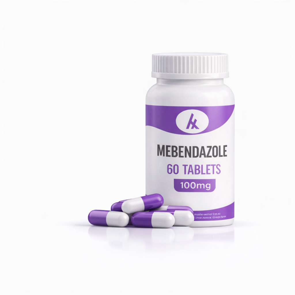 Mebendazole 600mg tablets are supplied in a secure 60-count bottle designed for controlled and directed use. Each tablet contains 600mg of mebendazole and is manufactured under quality-controlled standards to ensure consistency and product integrity.
